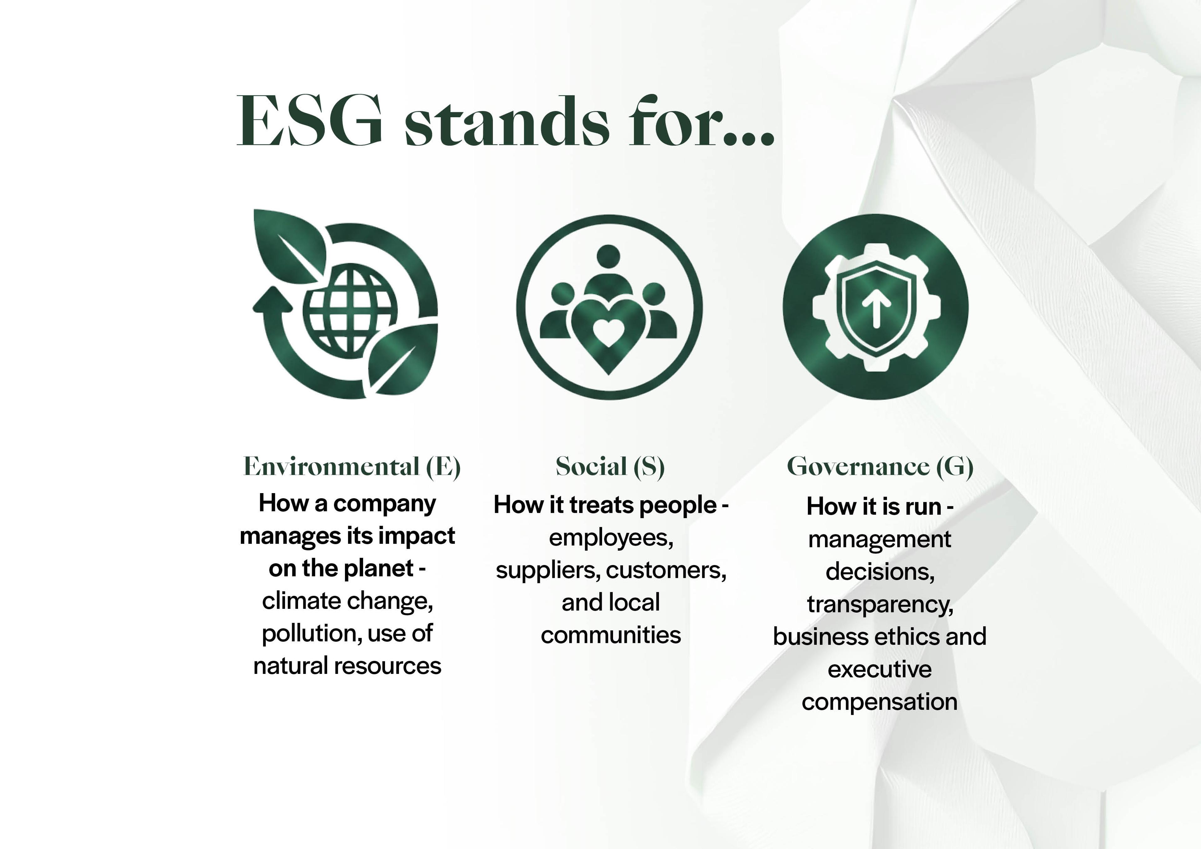 ESG factors help assess companies using important measures beyond traditional accounting metrics, giving a fuller view of an investment’s performance.